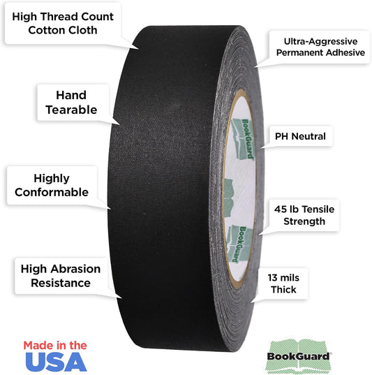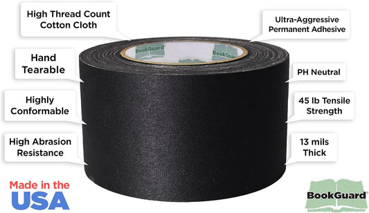 BookGuard 4 inch Premium Bookbinding Repair Cloth Tape, 15 Yard Roll, Black