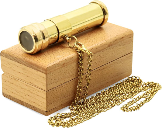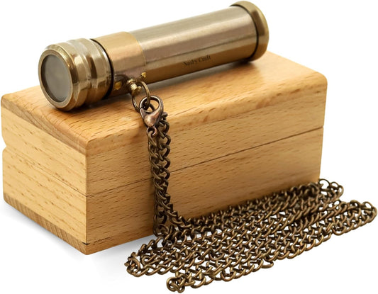 Brass Kaleidoscope with Wooden Box | Handcrafted Vintage Kaleidoscope with Optical Glass Lens & Wooden Storage Box – Collectible Gift for Kids & Adults Last Minute (Antique, Small)
