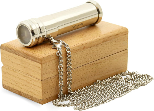 Brass Kaleidoscope with Wooden Box | Handcrafted Vintage Kaleidoscope with Optical Glass Lens & Wooden Storage Box – Collectible Gift for Kids & Adults Last-Minute (Silver/Brass, Small)