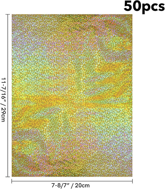 Briartw 20x29cm Hot Foil Paper 50 Sheets Pack Toner Reactive Foil Hot Stamping Foil Paper by Laser Printer and Laminator for Scrapbooking Craft Cardmaking DIY Album (Gold Crystal Point, 50 Sheets)