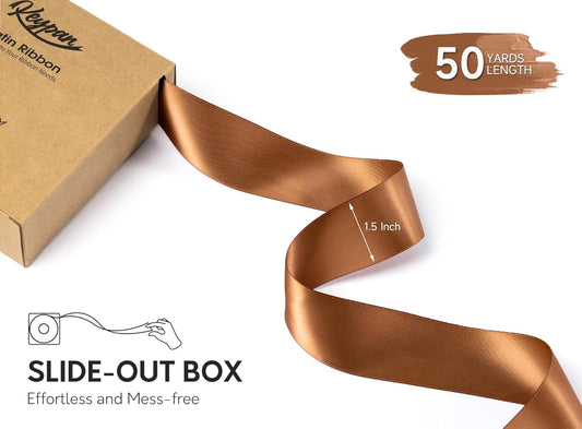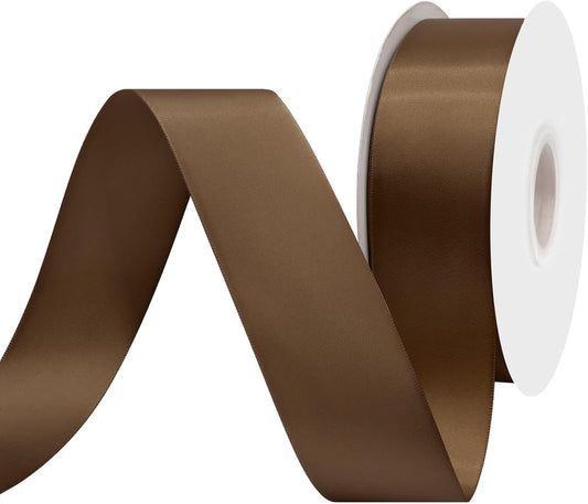 Brown Satin Ribbon 1-1/2 Inch 50 Yards Double-Faced Polyester Ribbons for Gift Wrapping Crafts Flower Bouquet Wedding Paper Christmas Holiday Decor