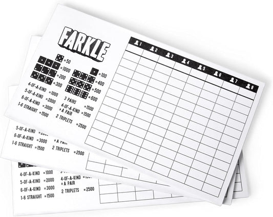 Brybelly Farkle Scorecards – Set of 75 Replacement Score Sheets for Farkle Dice Games for Up to 8 Players
