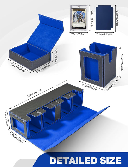 Card Deck Box,X-Large Premium Trading Card Storage Case with Mat and Dice Compartment,Magnetic Game Deck Display Case Compatible with MTG/TCG/Yugioh/Magic/Commander(Black&Blue)