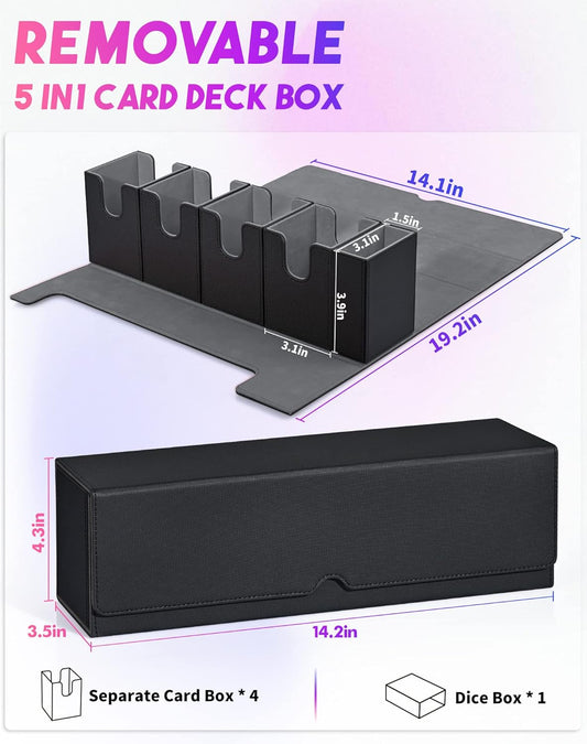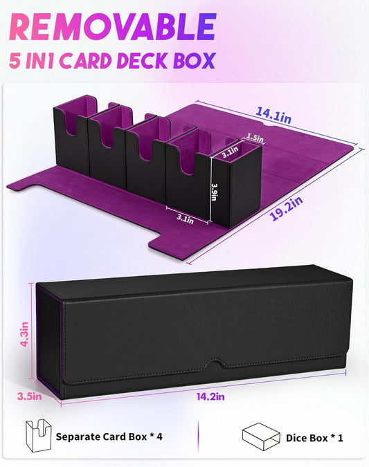 Card Deck Box with Dice Tray for MTG, 5 in 1 Card Deck Case Holds 800+ Unsleeved Cards, Strong Magnet Organizer Compatible with Yugioh TCG Sports Cards (Black Purple)