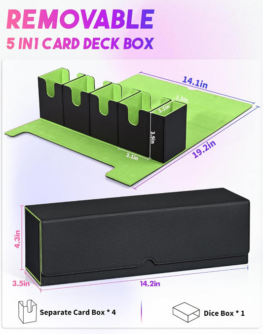 Card Deck Box with Dice Tray for MTG, 5 in 1 Card Deck Case Holds 800+ Unsleeved Cards, Strong Magnet Organizer Compatible with Yugioh TCG Sports (Black Green)