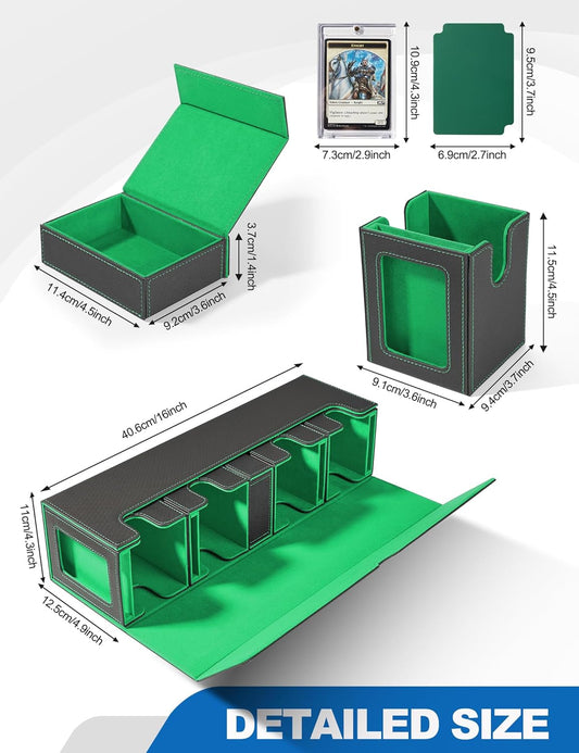 Card Deck Box for MTG with Commander Display, 5 in 1 Card Deck Case Holds 800+ Unsleeved Cards, Strong Magnet Organizer Compatible with Yugioh TCG Sports Cards (Black&Green)