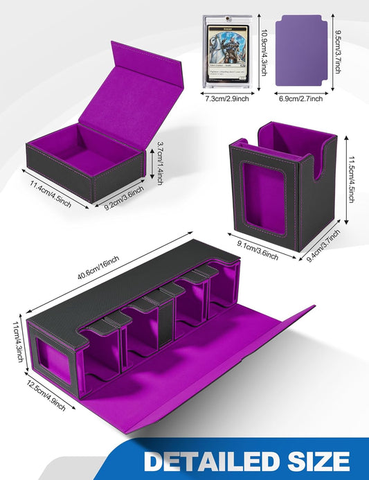 Card Deck Box for MTG with Commander Display, 5 in 1 Card Deck Case Holds 800+ Unsleeved Cards, Strong Magnet Organizer Compatible with Yugioh TCG Sports Cards (Black&Purple)
