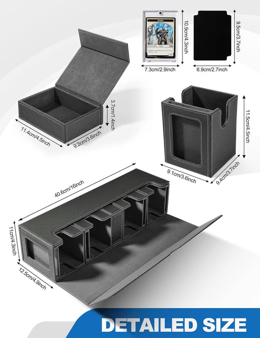 Card Deck Box,X-Large Premium Trading Card Storage Case with Mat and Dice Compartment,Magnetic Game Deck Display Case Compatible with MTG/TCG/Yugioh/Magic/Commander(Black&Grey)