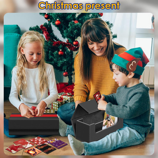 Card Deck Box,X-Large Premium Trading Card Storage Case with Mat and Dice Compartment,Magnetic Game Deck Display Case Compatible with MTG/TCG/Yugioh/Magic/Commander(Black&Red)