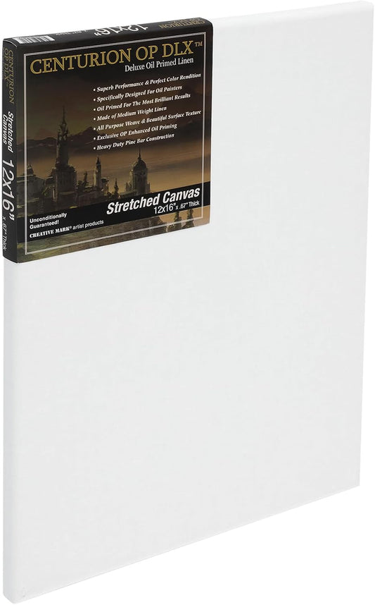 Centurion Deluxe Professional Oil Primed Linen Stretched Canvas, 11oz Linen, 12x16 - Box of 6, 0.67" Deep Canvases, Kiln-Dried Stretchers, Back Stapled, Premium Medium Weight Canvas for Oil Paintings