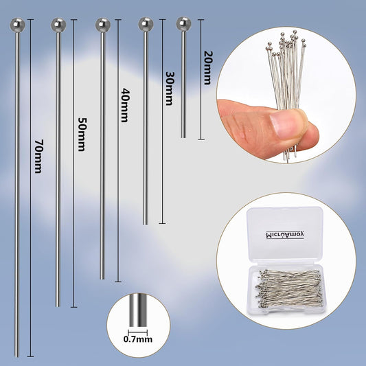 100pcs Silver Filled Ball Pins Non Tarnish Craft Earring Bracelet Jewelry Making Accessories Supplies (70mm (2.75in), Silver-Ball Pin)