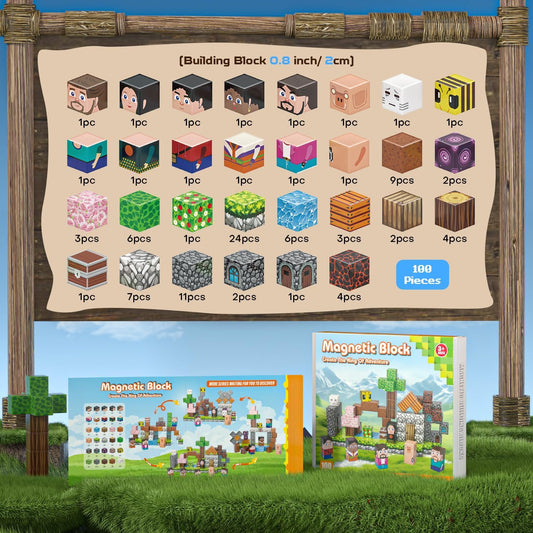 100PCS Magnetic Blocks - Build Mine Magnet World Froest Fox Adventure Set, Magnetic Toys Kids Games for Boys & Girls Age 3-5 5-7 8-12, Sensory Construction Outdoor Toys for Toddlers Birthday Gifts