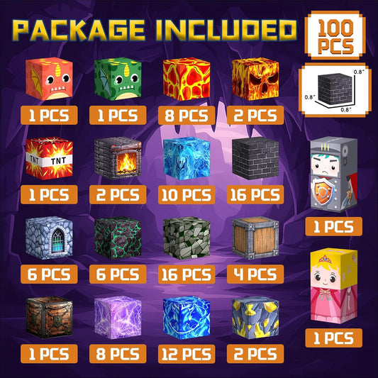 100PCS Magnetic Blocks - Build Mine Magnet World Mine Sword Adventure Set, Building Toys Classroom Must Haves Learning Sensory Toys for 3 4 5 6 7 8 Toddlers Kids Games Birthday Gifts for Boys & Girls