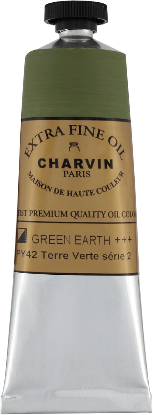 Charvin Extra Fine Oil Paint, Green Earth 60 mL - Triple-Milled, Rich Texture, Poppy Oil-Based, Light-Fast, Handmade, Archival Quality