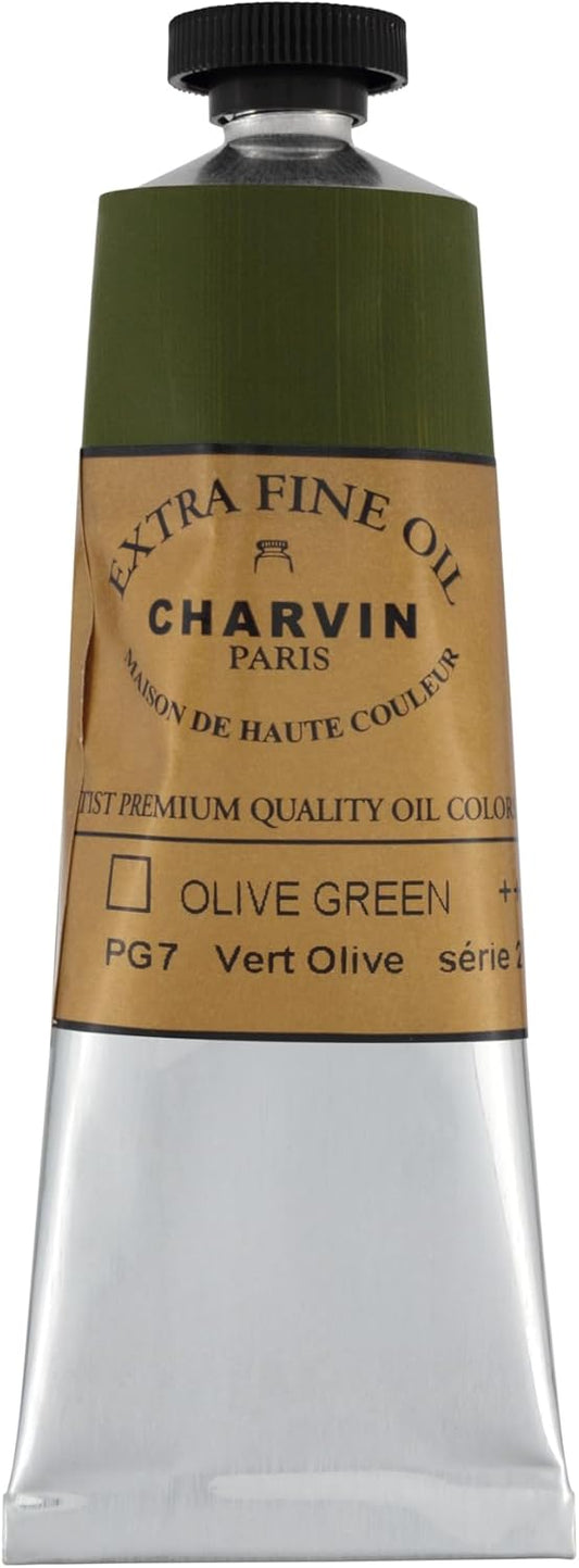 Charvin Extra Fine Oil Paint, Olive Green 60 ml - Triple-Milled, Rich Texture, Poppy Oil-Based, Light-Fast, Handmade, Archival Quality