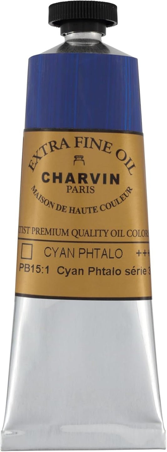 Charvin Extra Fine Oil Paint, Phthalo Cyan 60 mL - Triple-Milled, Rich Texture, Poppy Oil-Based, Light-Fast, Handmade, Archival Quality