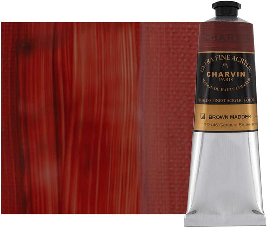 Charvin Extra Fine Professional Acrylic Paint - Brown Madder, 150ml Tube, Triple-Milled, Lightfast Pigments, Open Stock Artist Acrylic Paints in Nature-Inspired Hues