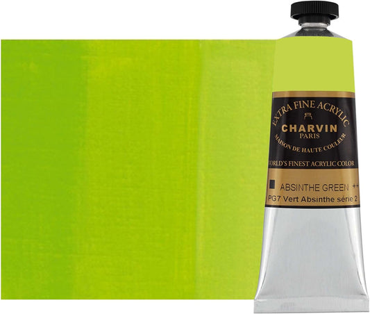 Charvin Extra Fine Professional Acrylic Paint - Absinthe Green, 60ml Tube, Triple-Milled, Lightfast Pigments, Open Stock Artist Acrylic Paints in Nature-Inspired Hues