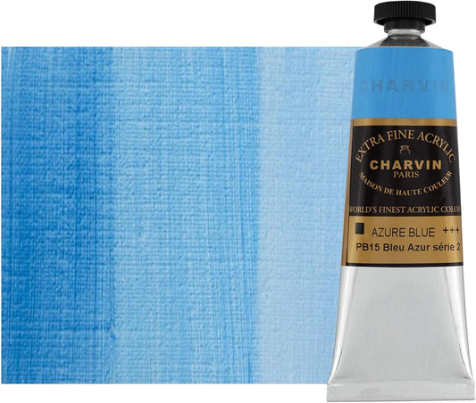 Charvin Extra Fine Professional Acrylic Paint - Azure Blue, 60ml Tube, Triple-Milled, Lightfast Pigments, Open Stock Artist Acrylic Paints in Nature-Inspired Hues