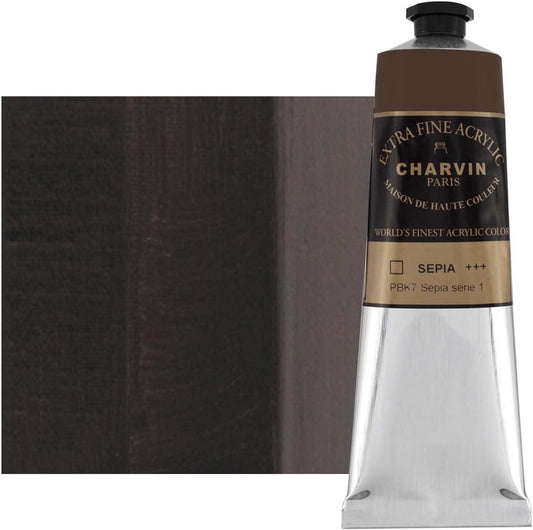 Charvin Extra Fine Professional Acrylic Paint - Sepia, 150ml Tube, Triple-Milled, Lightfast Pigments, Open Stock Artist Acrylic Paints in Nature-Inspired Hues