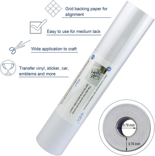 Clear Transfer Paper Tape Roll for Vinyl 12" x 50 FT Medium Tack for Adhesive Vinyl Signs, Application Clear Contact Paper Roll for Silhouette Cameo, Decals, Stickers, Windows (Transparent)