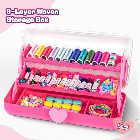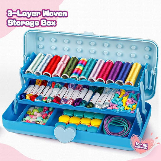 Cmiolacuna Friendship Bracelet Making Kit for Girls, 3-Layer Storage Box Arts and Crafts Bracelets Jewelry String Maker Kit Ages 8-12,Best Christmas Birthday Gift for Girls 6 7 8 9 10 11 12 Year Old