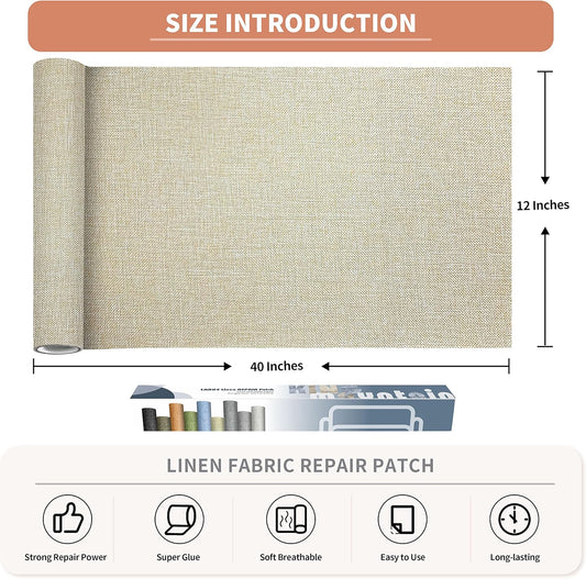 Coarse Linen Repair Patches, Self-Adhesive Linen Fabric Patches, 12X40 inch Extra Size, Multi Color, Can be Used for Linen Sofa Repair and Linen Clothes Repair(12" x 40",Beige 1.0)