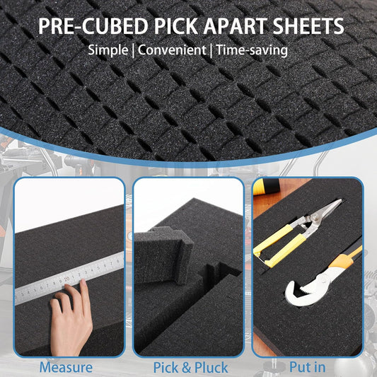 Coengwui Pick and Pluck Foam Inserts, Pre-Cubed Pick Apart Sheets for Crafts Toolbox Game Box Camera Cases Drawer Storage (2Pack 16 x 12 x 2" with 0.4" Bottom Padding)