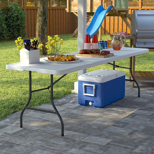 Cosco 6ft Fold-in-Half Blow Molded Folding Table, Indoor/Outdoor, Comfort Handle, Lightweight Plastic Construction - White
