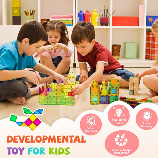 cossy 120Pcs Magnetic Tiles Magnetic 3D Building Blocks Set Educational Construction Toys for 3+ Year Kids with Stronger Magnets, Educational Toys, Recreational, Conventional