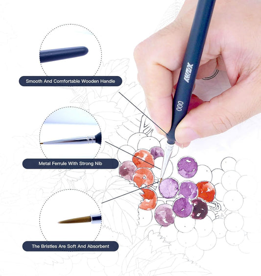 11Pcs Fine Detail Paint Brushes Set Fine Tip Paint Brush Miniature Mini Paints Brush for Watercolor, Oil, Acrylic, Face, Nail, Scale Model Painting Line Drawing (00000#-7#) Dark Blue XZHY