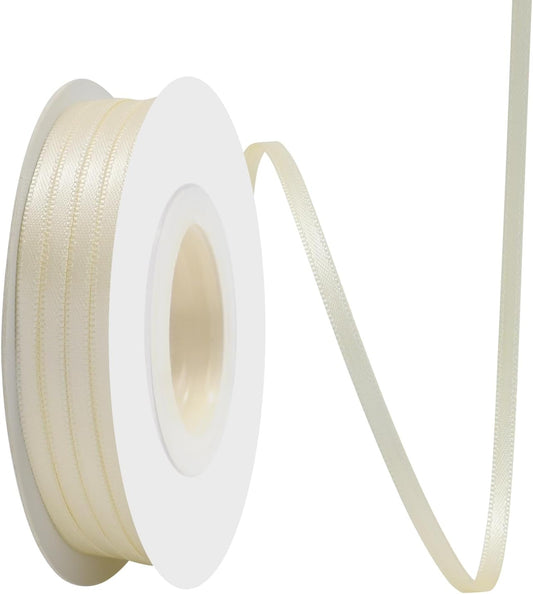 Cream Satin Ribbon 1/8" X 50 Yards Solid Color Double Faced Ribbons Perfect for Crafts Wedding Decor Bow Making Arts Sewing and More