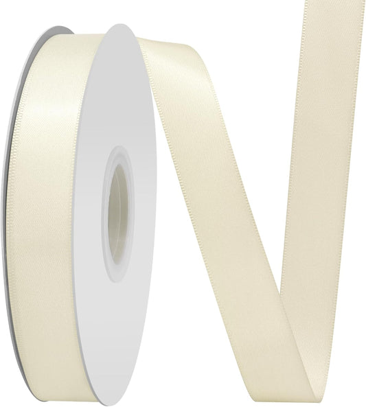Cream Satin Ribbon 3/4" X 50 Yards Solid Color Double Faced Ribbons Perfect for Crafts Wedding Decor Bow Making Arts Sewing and More