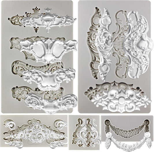 Crown Baroque Style Ornament Silicone Molds 5-count Art Decor Filigree Scrollworks