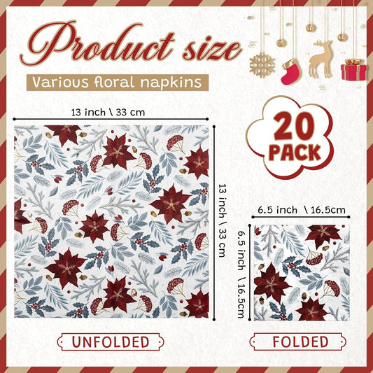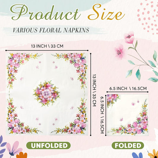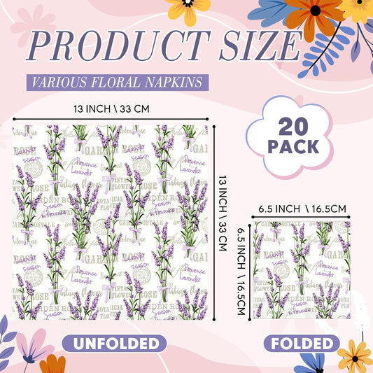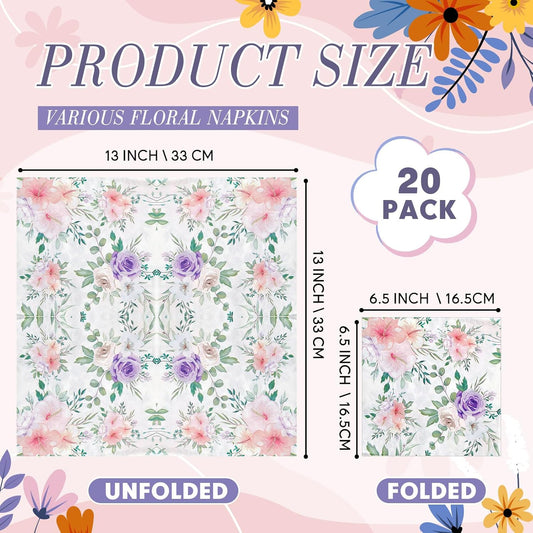 Crtiin 20 Pack Assorted Floral Napkins for Decoupage Toilet Napkins Flower Cocktail Decorative Paper for Birthday Party Beautiful Gorgeous, 20 Styles Each 6.5 inches(Style 2)