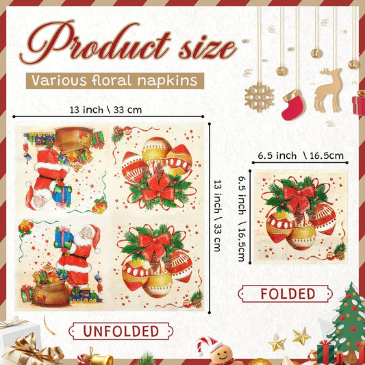 Crtiin 20 Pack Assorted Christmas decoupage napkins Santa Snowman Tree Napkins Decorative Beautiful for Birthday Xmas Winter Party Supplies, 20 Styles Each 6.5 Inches