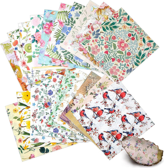 Crtiin 20 Pack Assorted Floral Napkins for Decoupage Toilet Napkins Flower Cocktail Decorative Paper for Birthday Party Beautiful Gorgeous, 20 Styles Each 6.5 inches(Style 6)