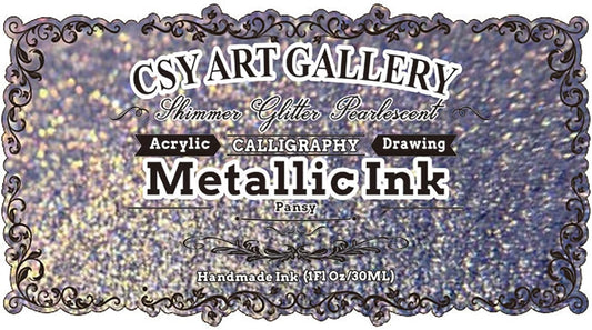 CSY art gallery Metallic Acrylic Ink-Craft Paint-Calligraphy Inks,Glitter-Pearlescent -Parma Violet Drawing Ink Liquid Gold Leaf Paints with Dropper, 1oz - 29.5 ml
