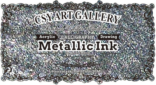 CSY Art Gallery Metallic Acrylic Paint Ink-Alcohol Inks -Crafts Paints Fast-Drying, Permanent Inks for Epoxy Resin, Tumblers, Fluid Art Painting, Glass, Metal, and More (Carbon Silver)