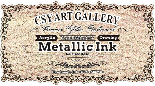 CSY Art Gallery Metallic Acrylic Ink, 1-oz(30ml) Bottle with Dropper, Quick Dry Permanent Acrylic Drawing Inks for Artist (Solstice Rose)