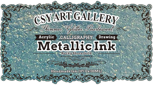 CSY Art Gallery Metallic Acrylic Paint Inks -Calligraphy Ink -Professional Rich Pigment for Marker Pen,Painting,Drawing,Sketch,Resin,Wood,Ceramic (Rocky Shore Gold)