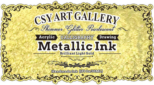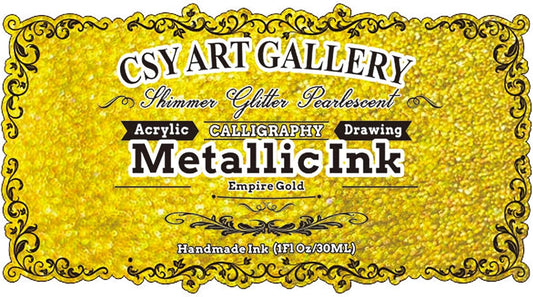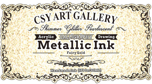 CSY Art Gallery Metallic Acrylic Paint Set-1-oz (30 ml) -Liquid Inks-Golden Permanent Calligraphy Ink for Artists,Canvas, Rocks,Wood, Fabric,Ceramic(Fairy Gold)