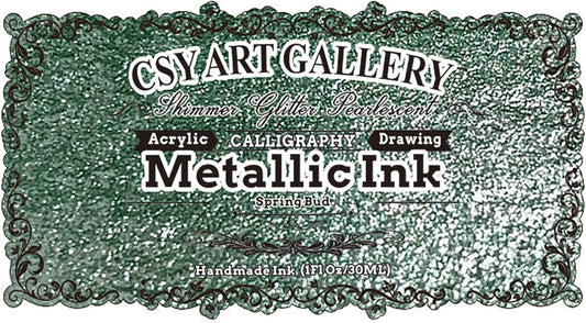 CSY Art Gallery Metallic Calligraphy Inks for Artist -Acrylic Paints 30ml – Liquid Green Leaf Paint High Gloss Perfect for Canvas, Wood, Ceramic, and DIY (Spring Bud)