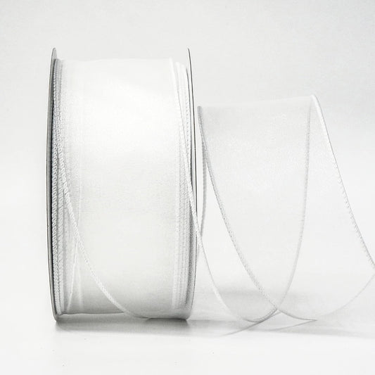 CT CRAFT LLC Sheer Organza Wired Ribbon 2.5" x 50Yards White for Wedding Chair Bow Flora Bouquet Gift Wrapping Christmas Tree Home Decor Wreath