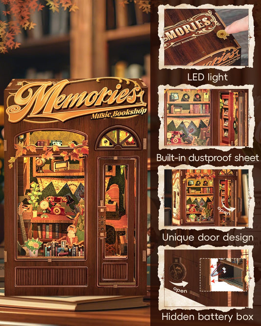 CUTEBEE Book Nook Kit - DIY Miniature House Dollhouse Kit for Adult and Teens, Booknook Bookshelf Decor Alley Model Build with LED Light, Gifts for Family and Friends (Memories Music Bookshop)