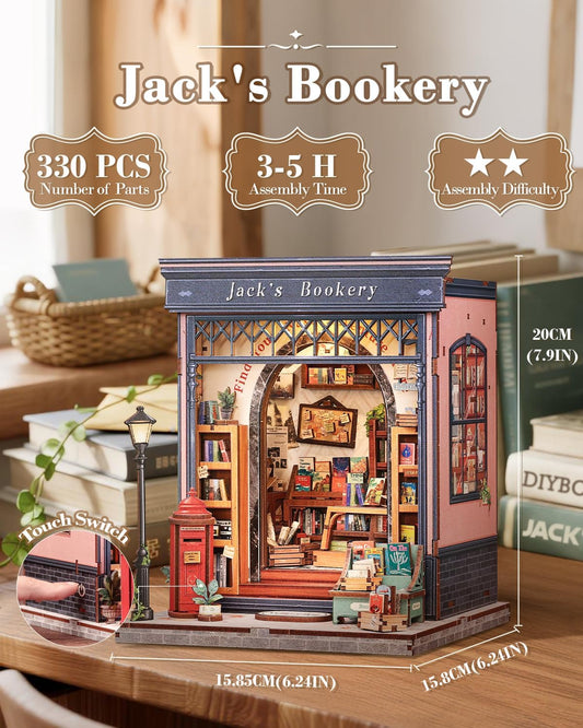 CUTEBEE Book Nook Kit - DIY Miniature House Dollhouse Kit for Adults and Teens, Booknook Tiny House Bookstore Library Bookshelf Decor 3D Wooden Puzzle, Gifts for Family, Friends (Jack’s Bookery)