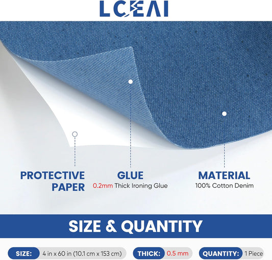 Denim Patches for Inside Jeans - Iron On Patches for Jeans - Jeans Patch for Repairing Pant Holes and Covering Imperfections, Large Size, 4 in. x 60 in.Light Blue