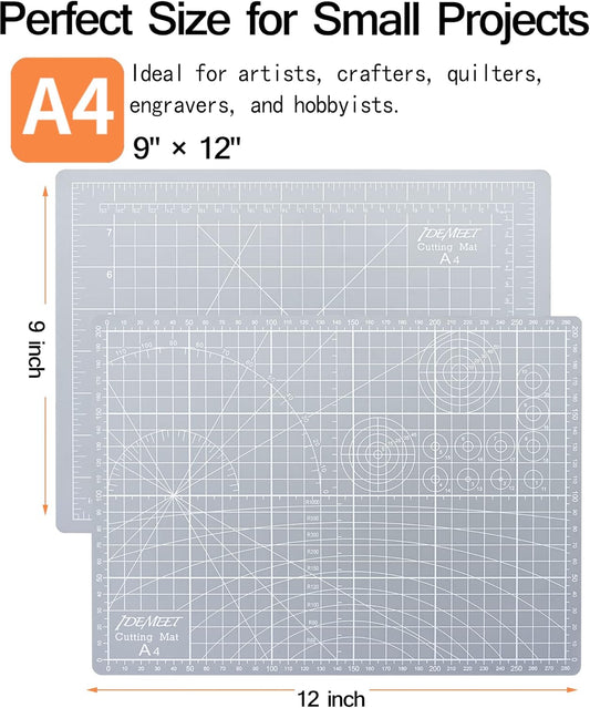 Density-upgraded 9"x12" Self Healing Cutting Mat, Idemeet Rotary Sewing Mat for Crafts, 5-Ply Blade Table Protector Cut Board for Fabric Leather Cutting Quilting Modeling Hobby Project, A4, Gray