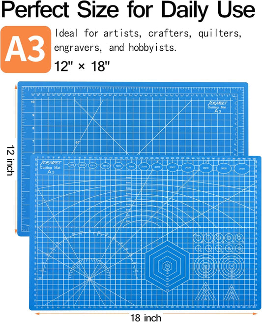 Density-upgraded 18"x12" Self Healing Cutting Mat, Idemeet Rotary Sewing Mat for Crafts, 5-Ply Blade Table Protector Cut Board for Fabric Leather Cutting Quilting Modeling Hobby Project, A3, Blue