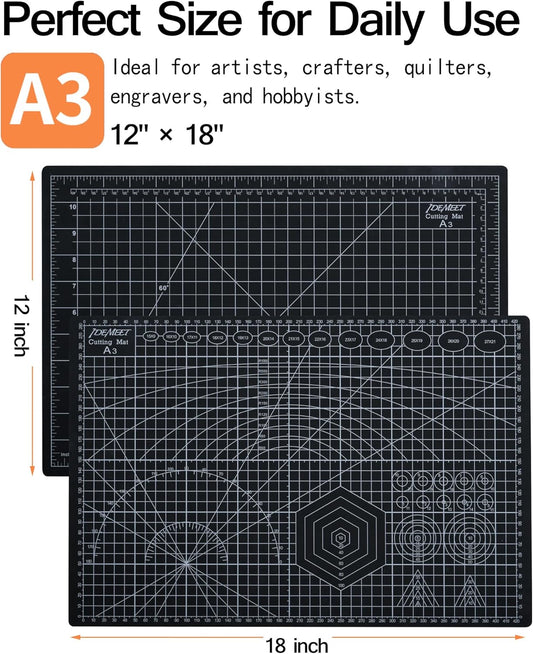 Density-upgraded 18"x12" Self Healing Cutting Mat, Idemeet Rotary Sewing Mat for Crafts, 5-Ply Blade Table Protector Cut Board for Fabric Leather Cutting Quilting Modeling Hobby Project, A3, Black